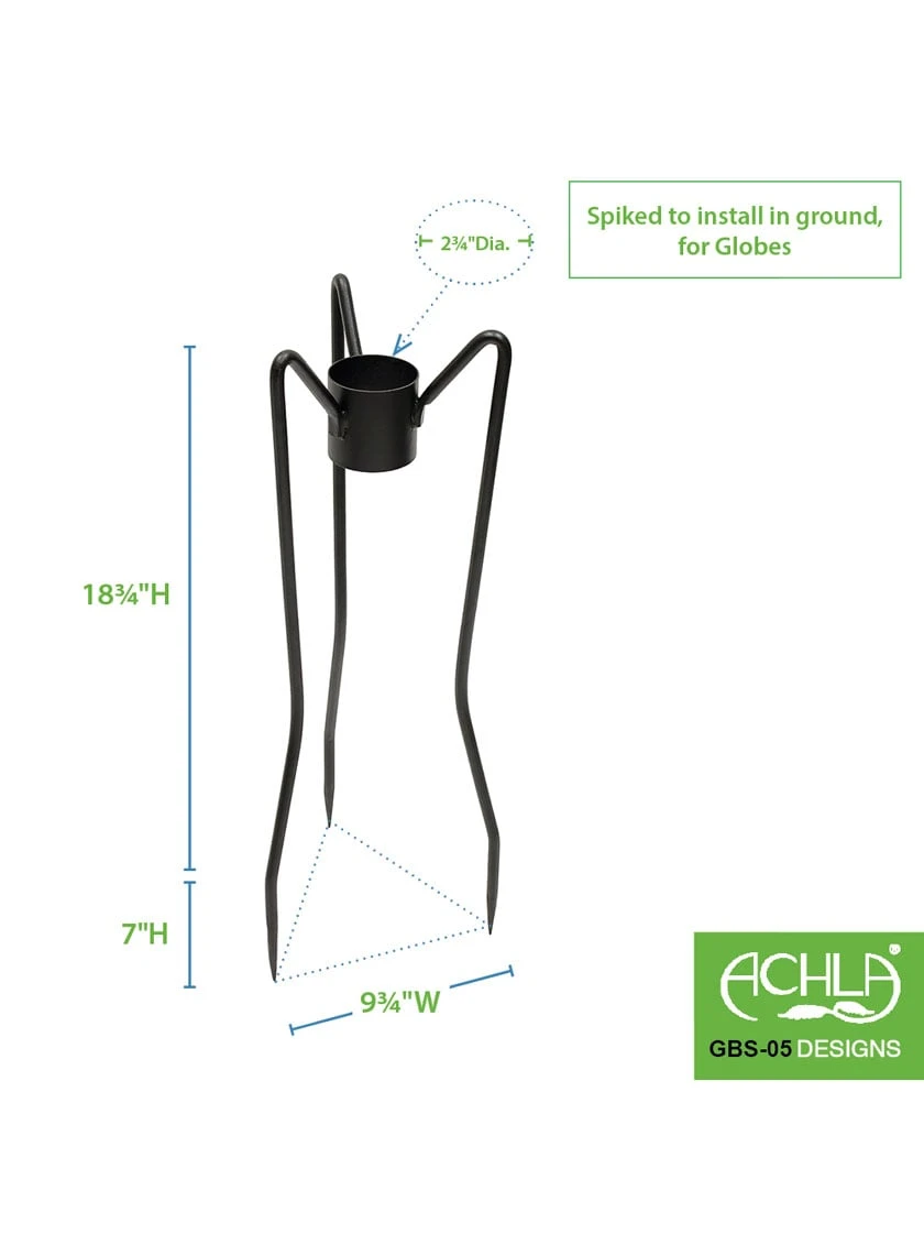 Popularized in the Victorian era, the mirrored finish of the Gazing Ball provided a fish-eye view of the entire garden and was believed to fend off misfortune and deliver happiness and joy. A striking ornament in the garden, usually made of blown glass, gazing globes need a stand to keep them secure and on view. These simple spiked stands will securely hold the gazing globe when staked into the ground. All Achla Designs Gazing Globes have a stem that rests in the tubular section at the top of the stand, ensuring the globe will stay seated in place. Designed to work with any Achla Designs Gazing Globes, in 6ā, 10ā, or 12ā diameter.