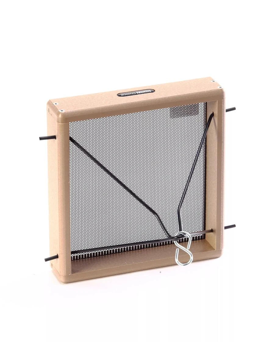 The recycled Hanging Tray Feeder is made from recycled plastic and milk jugs, lifetime guarantee to never crack, split or fade. It also contains stainless steel screws and collapsible powder-coated steel rods. This patented designed feeder is ready to hang!