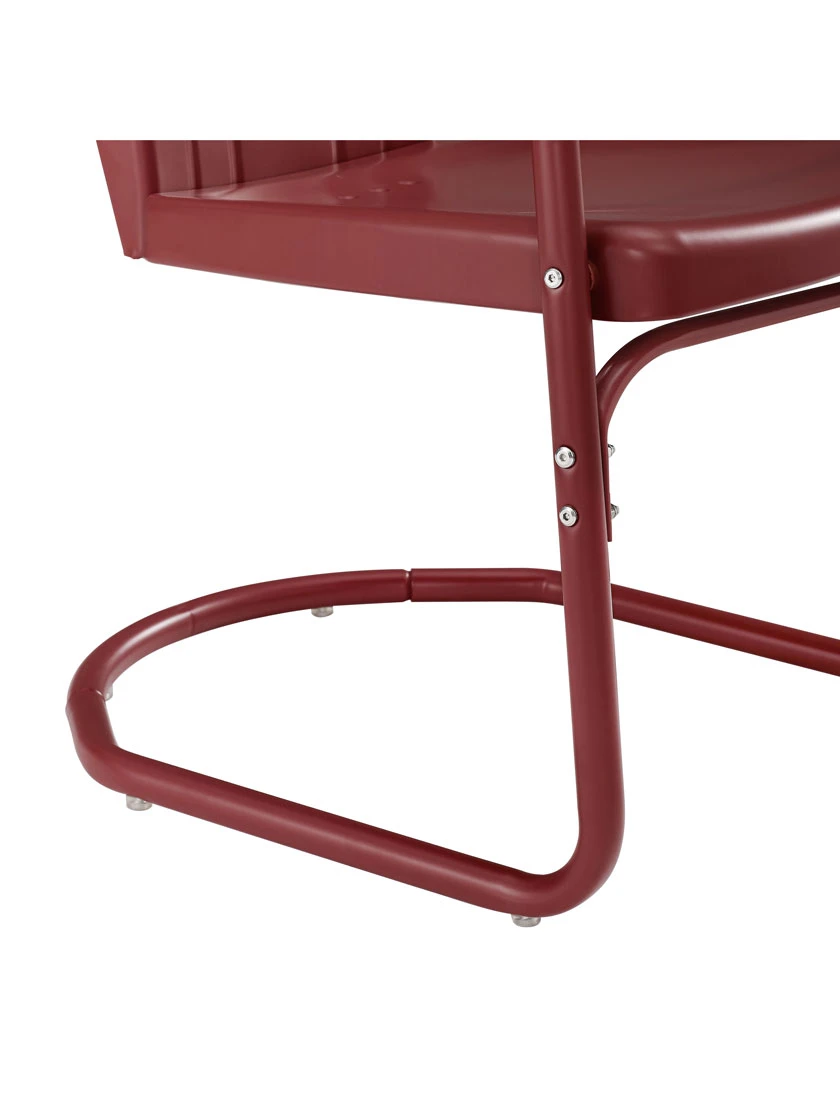 Charming and nostalgic, the Tulip 5-Piece Dining Set combines vintage style with classic function. Four scalloped chairs in vibrant colors surround a simple metal dining table for a fun and functional outdoor dining experience. The retro silhouette of each chair sits atop a cantilever base that provides a relaxed seat for dining al fresco.
