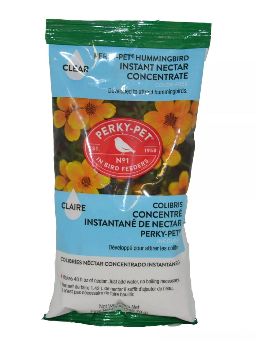 If you have always thought that hummingbird nectar should be red, you’ll want to know that the red color comes from a chemical dye that may be harmful to birds. We recommend this clear nectar that’s better for hummingbirds and easier for you, because it mixes up instantly with tap water — no boiling necessary! Make it in small quantities as needed and it will stay fresh and wholesome. Makes 3 quarts of nectar.
