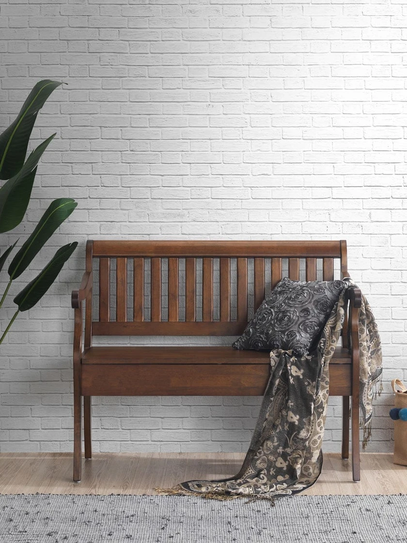 Our Deluxe Veranda multifunctional, hand-crafted storage bench comes in an Elm finish and features a large storage area underneath the seat. It features a classic design with a slatted back and scrolled arms. It comfortably accommodates up to two people.